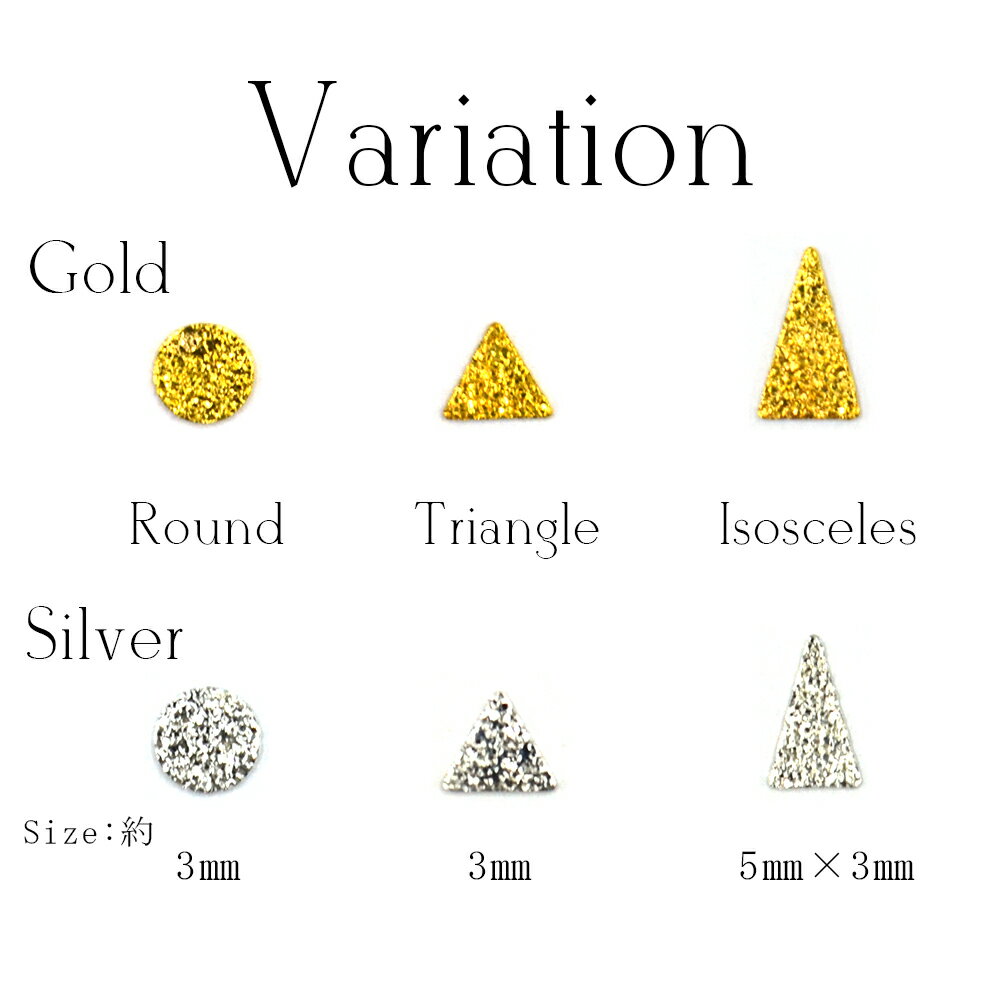 サンドフラットパーツ [ラウンド/トライアングル/アイソセリーズ] ゴールド/シルバー フラットパーツ サンド加工 三角 丸 二等辺三角形 ジェルネイル ネイルパーツ メタルパーツ