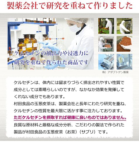 また、製品はGMP認定の製薬会社で作られており、残留農薬や放射線検査を製造ロット毎に実施しており、一切不検出の玉ねぎの皮のみ使用しております。