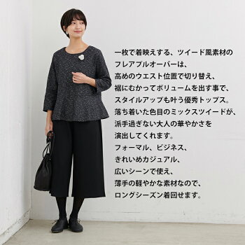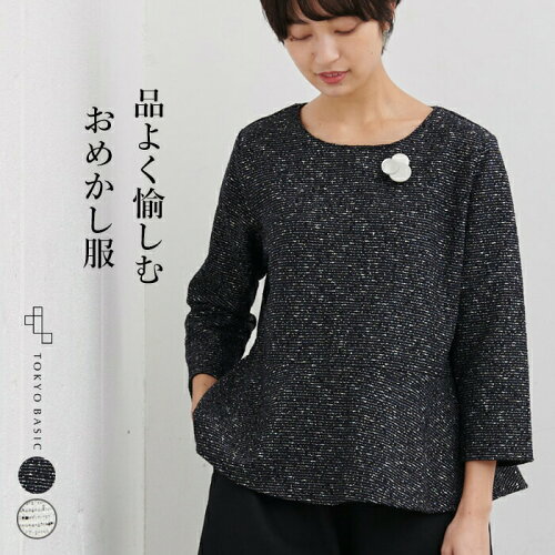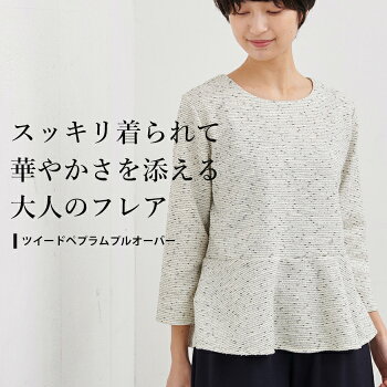 [ペプラム トップス プルオーバー レディース] ツイード ペプラム プルオーバー / 日本製 40代 50代 60代 30代女性 ファッション フレア フォーマル オフィス ゆったり 卒業式 母 入学式 きれいめ
