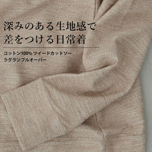 [トレーナー レディース 秋冬] コットン100% ヨリモクツイード カットソー ラグラン プルオーバー / 日本製 メール便可 40代 50代 60代 30代女性 ファッション ルームウェア ラグランスリーブ コットン 綿100 長袖