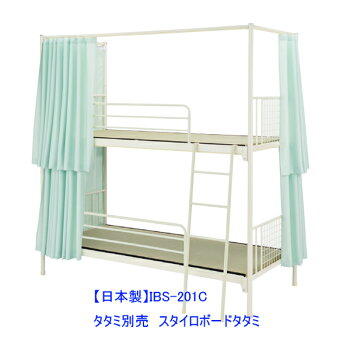 o○ 【日本製】スチールフレーム2段ベットマット別売 商品名 ●IBS-201C四方遮光カーテン付き カーテンカラー ベージュ/グリーン サイズ W980×L2060×H2230 仕 様 主材:38.1φパイプ(粉体塗装) 床枠:60x30角パイプ ボトム:メッシュ張り 付属品:サイドレール×2本、ハシゴ 備 考 組立式 定 価 (本体価格254,000円)マット別売り 【送料無料】(但し、九州・東北・北海道・沖縄・離島は別途見積します) ●カネセン家具楽天市場の「業務用スチール2段ベット」からお入り下さい。